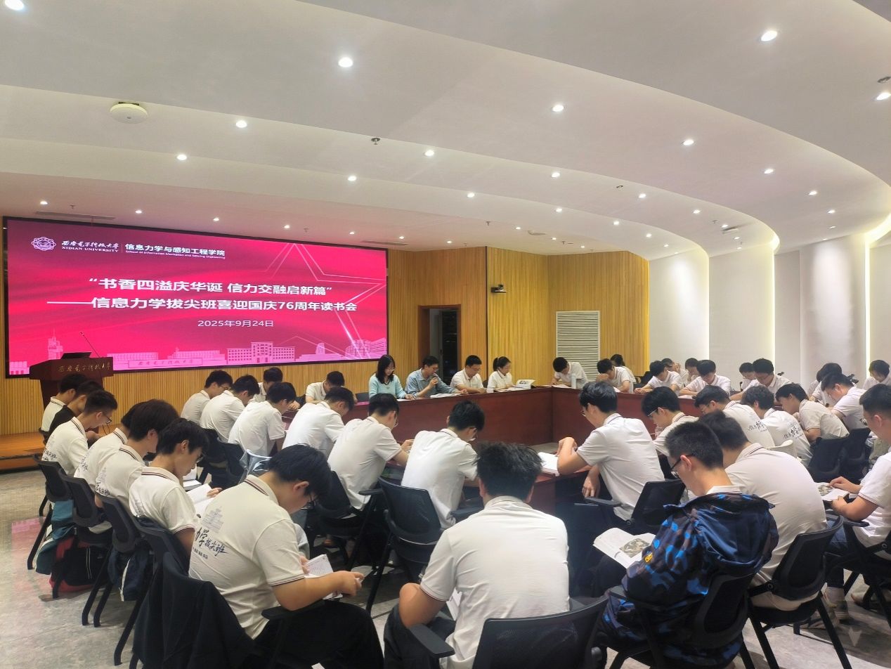 (通讯员 李森)为庆祝中华人民共和国成立76周年, 9月24日下午,信息力学拔尖班以“书香四溢庆华诞,信力交融启新篇”为主题,在会议中心A103成功举办喜迎国庆读书会。教师代表韩雨辰、本科公司产品干事李森与24级、25级拔尖班全体同学齐聚一堂,以《工程诺贝尔奖》为媒,共话科学精神与家国担当。